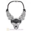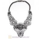 Luxury brand Black Diamond and Clear Crystal Flower Statement Necklaces Wholesale