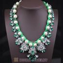 Knitted Pearl Green Resin Crystal Flower Statement Necklaces Wholesale