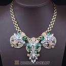 Luxury brand White Green Crystal Flower Statement Necklaces Wholesale