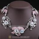 Vintage Style Brand Clear Crystal Flower Statement Necklaces Wholesale