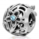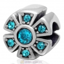 925 Sterling Silver Sweet Heart Bead with Aquamarine Crystal Flower Charm