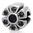 925 Sterling Silver Sweet Heart Bead with Clear Crystal Flower Charm