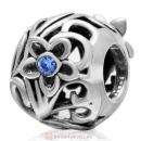 925 Sterling Silver Sweet Heart Bead with Sapphire Crystal Flower Charm