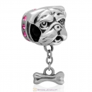 925 Sterling Silver Shar-Pei Dangle Bone Charms with Rose Australian Crystal