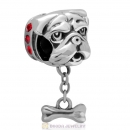 925 Sterling Silver Shar-Pei Dangle Bone Charms with Lt Siam Australian Crystal