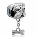 925 Sterling Silver Shar-Pei Dangle Bone Charms with Sapphire Australian Crystal