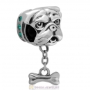 925 Sterling Silver Shar-Pei Dangle Bone Charms with Emerald Australian Crystal