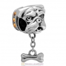 925 Sterling Silver Shar-Pei Dangle Bone Charms with Topaz Australian Crystal