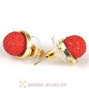 Fashion Gold Plated Dark Green Bubble Strawberry Stud Earring Wholesale