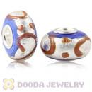 Blue Ribbon Silver Foil Glass Charm Beads With Sterling Silver Single Core