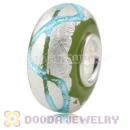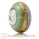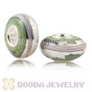 Green Ribbon Silver Foil Glass Charm Beads With Sterling Silver Single Core