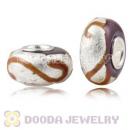 Brown Ribbon Silver Foil Glass Charm Beads With Sterling Silver Single Core