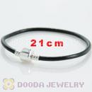 21cm Single Slippy Black Leather Charm Jewelry Bracelet