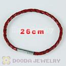 26cm red braided leather chain, silver plated needle clasp fit Charm Jewelry Bracelet