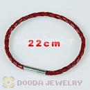 22cm red braided leather chain, silver plated needle clasp fit Charm Jewelry Bracelet