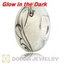Painted Vine Fluorescent European Glass Art Beads in 925 Silver Core
