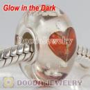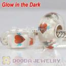 Painted Heart Fluorescent European Glass Beads in 925 Silver Core