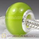 Grass Green Cat Eye Lampwork Glass Beads with alloy double core fit European Largehole Jewelry Bracelet
