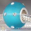 Kerastyle Silver Frosted Glass Blue Bead with Austrian crystal Accents suit European Largehole Jewelry Bracelet