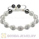 Skull Head Inspired Mens String Bracelets with Pave White Czech Crystal and Hemitite