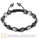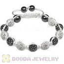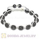Black Skull Head Inspired Mens String Bracelets with Pave White Czech Crystal and Hemitite