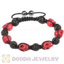 Red Skull Head Inspired Mens String Bracelets with Pave Czech Crystal and Hemitite
