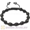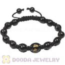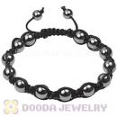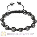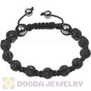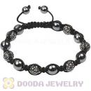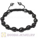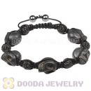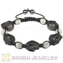 Black Skull Head Inspired Mens String Bracelets with Pave Czech Crystal and Hemitite