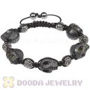 Black Skull Head Inspired Mens String Bracelets with Pave Grey Czech Crystal and Hemitite
