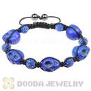 Skull Head Inspired Mens String Bracelets with Pave Blue Czech Crystal and Hemitite