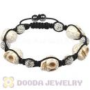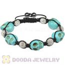 Turquoise Skull Head Inspired Mens String Bracelets with Pave White Czech Crystal and Hemitite