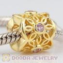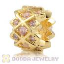 Gold plated Sterling Silver Grid charm Beads with Pink stones