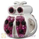 Authentic 925 Sterling Silver Ladybug charm bead with pink and black Austrian crystal