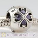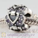 Sterling Silver Elegant Embrace heart charm beads with purple CZ stones