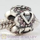 Sterling Silver Elegant Embrace heart charm beads with pink CZ stones