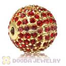 12mm Gold plated Sterling Silver Disco Ball Bead Pave Red Austrian Crystal handmade Style