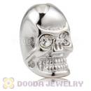 8×14mm Rhodium plated Sterling Silver Skull Head Bead with Clear Crystal stone