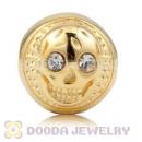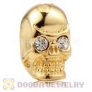 10×11mm 18K Gold plated Sterling Silver Skull Head Ball Bead with Clear Crystal stone