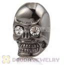 8×14mm Gun black plated Sterling Silver Skull Head Bead with Clear Crystal stone