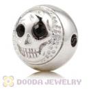 10×11mm Rhodium plated Sterling Silver Skull Head Ball Bead with Black Crystal stone