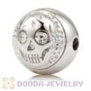 10×11mm Rhodium plated Sterling Silver Skull Head Ball Bead with Clear Crystal stone