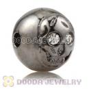 10×11mm Gun black plated Sterling Silver Skull Head Ball Bead with Clear Crystal stone