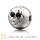 8×9mm Rhodium plated Sterling Silver Skull Head Ball Bead with Black Crystal stone