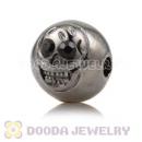 10×11mm Gun black plated Sterling Silver Skull Head Ball Bead with Black Crystal stone