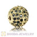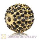 12mm Gold plated Sterling Silver Disco Ball Bead Pave Black Austrian Crystal handmade Style