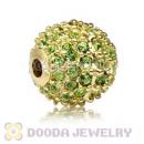 10mm Gold plated Sterling Silver Disco Ball Bead Pave Grass Green Austrian Crystal handmade Style