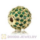 12mm Gold plated Sterling Silver Disco Ball Bead Pave Green Austrian Crystal handmade Style