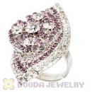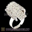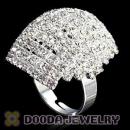 Wholesale Unisex Silver Plated White Crystal Semi Circle Finger Ring