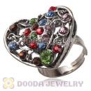 Mix Size Unisex Silver Plated Change Color Heart Finger Ring Wholesale