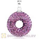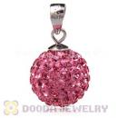 925 Sterling Silver 12mm Pave Pink Czech Crystal Pendants Wholesale