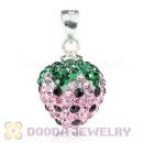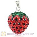 12X13mm Sterling Silver Czech Crystal Strawberry Pendants Wholesale